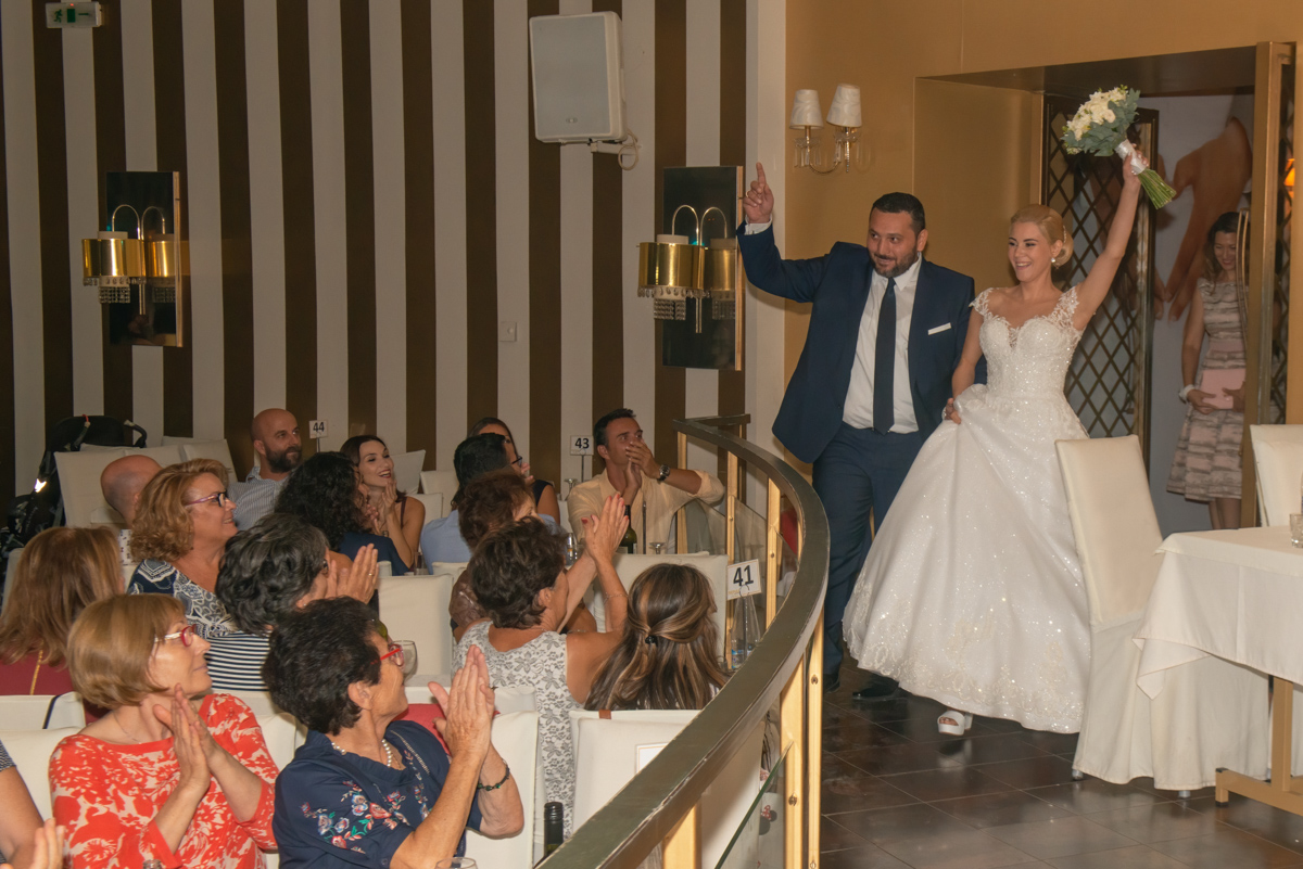 Wedding reception (Party) Είσοδος ζευγαριού στην δεξίωση, Κόψιμο τούρτας, Πρώτος χορός, Πέταγμα ανθοδέσμης. Στιγμές χαράς και διασκέδασης μετά την Στέψη.. Fun dance floor photographs.